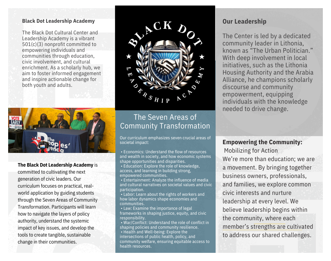 Whether you’re a young person eager to learn, a community member looking to engage, or a supporter passionate about our mission, there are many ways to get involved with Black Dot Cultural Center and Leadership Academy. Join us in our programs, volunteer your time, or support our initiatives with a donation. Together, we can create a more informed, engaged, and empowered community. We look forward to welcoming you to our community.